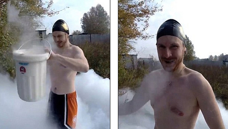 Der Russe vor und nach der Eiskübelherausforderung. |