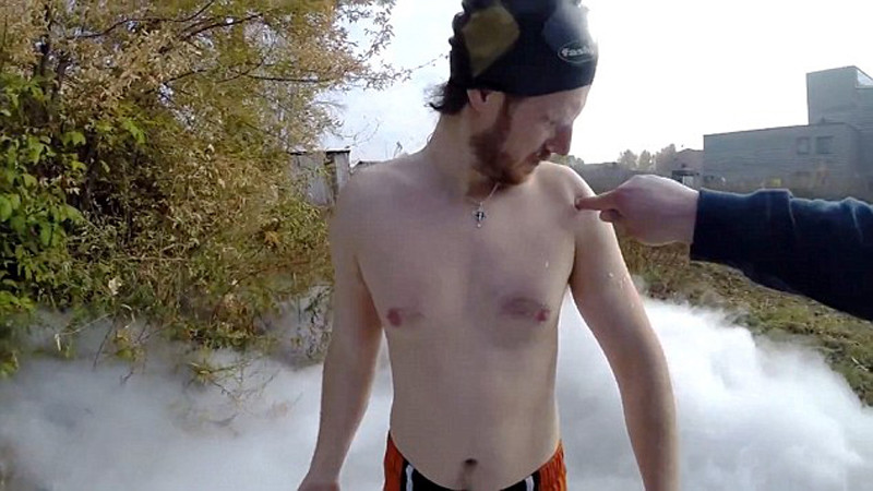 Ein Freund prüft, ob Konowalows Haut gefroren ist. |