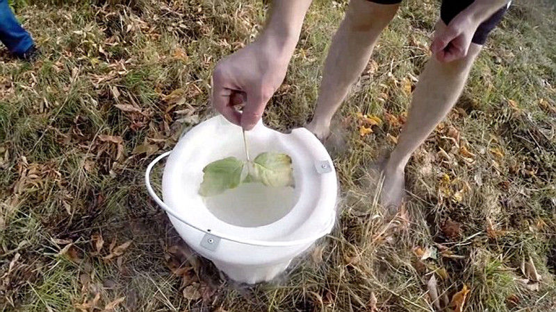 Konowalow erkl?rt die Wirkung von Flüssigstickstoff mit einem Blatt. |