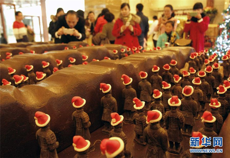 Die Terrakotta-Armee aus Schokolade in Xi’an. (Foto: Xinhua/Jiao Hongtao) |