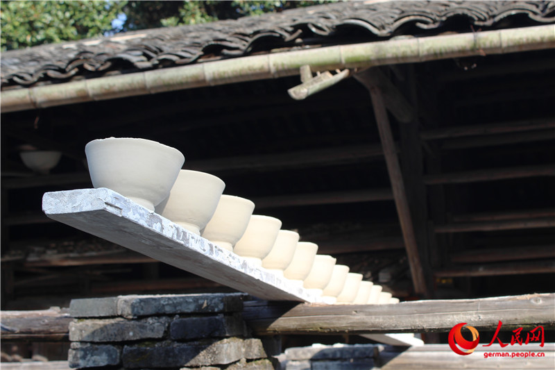 Museum der alten Brenn?fen: Halbfertigte Porzellanschalen werden an der Sonne getrocknet. |