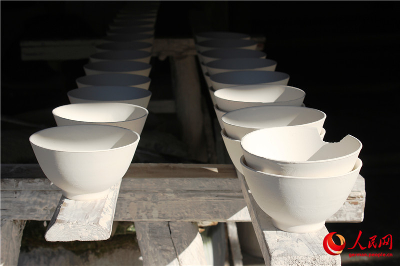 Museum der alten Brenn?fen: Halbfertigte Porzellanschalen werden an der Sonne getrocknet. |