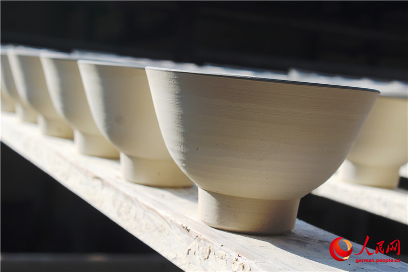 Museum der alten Brenn?fen: Halbfertigte Porzellanschalen werden an der Sonne getrocknet. |