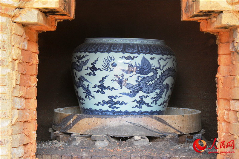 Museum der alten Brenn?fen: Nach 7-t?gigem Brennen und 15-t?gigem Abkühlen in dem Longgang-Brennofen wird die Drachen-Bütte in Blau und Wei? den Blicken der Besucher freigegeben. |