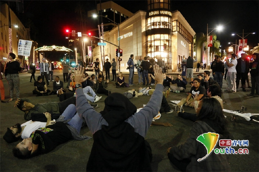 In Beverly Hills (Los Angeles) legen sich die Demonstranten auf die Stra?e, um ihre Wut über den Entscheid der Grand Jury zu zeigen. |