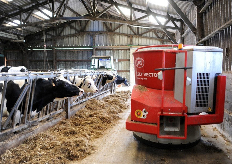 In Frankreich füttert ein Roboter das Milchvieh mit Gras. Der Roboter kostet 140.000 Euro. Der hohe Preis lohnt sich aber alleweil. Denn der Roboter erh?ht die t?gliche Milchleistung pro Kuh um 35 Liter. |