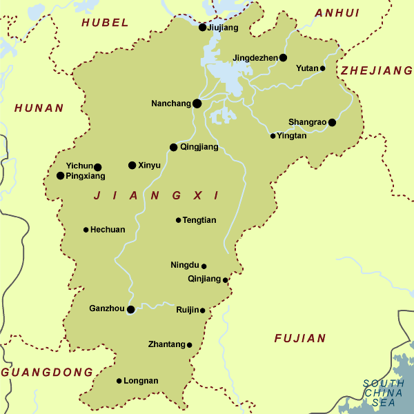 Obwohl die südchinesische Provinz Jiangxi nicht ans Meer grenzt, spielt das Wasser für die Provinz eine wichtige Rolle: Im Norden trennt der Jiangtsekiang, der l?ngste Fluss Chinas, Jiangxi von seinen Nachbarprovinzen Hubei und Anhui, und direkt südlich davon liegt der Poyang-See, der gr??te Sü?wassersee des Landes.