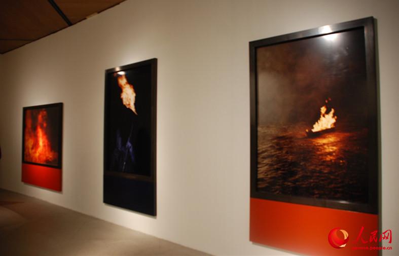 Die drei zweiteiligen Werke von Marie-Jo Lafontaine (von links nach rechts): "Jeder Engel ist schrecklich"; "Homme cagoulé portant le feu" (?Fackel tragender Mann mit Maske“); "Bateau de feu" (?brennendes Boot“). Lafontaine ist eine Belgierin und ist seit 2004 Gastprofessorin an der Universit?t der Künste Berlin. |