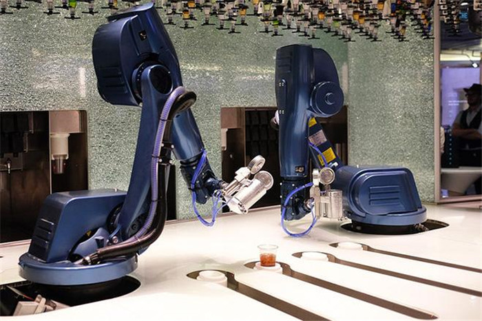 Barmann: Auf dem Luxus-Kreuzfahrtschiff ?Quantum of the Seas“ der Firma Royal Caribbean bedienen neuerdings zwei Roboter namens Monsieur die G?ste in den Bars. Die beiden k?nnen 300 Arten von Cocktails mischen. Für ein Glas Wein brauchen sie nur ein Paar Sekunden. |