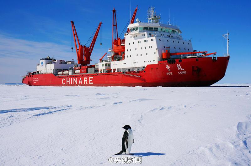 Pinguine hei?en ?Schnee-Drachen“ willkommen (Fotoquelle: Sina-Mikroblogging von cctvxinwen) |
