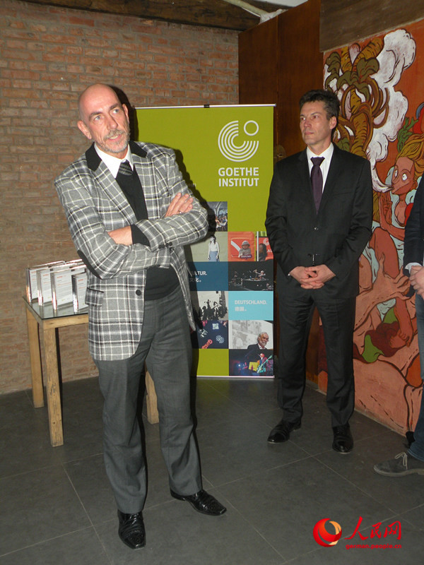 Der Leiter des Goethe-Instituts Peter Anders spricht bei der Abschlusszeremonie, dass er sich darüber sehr freue, dass die vier Tandempaare durch diese Gelegenheit ihre Kompetenzen zur L?sung der Probleme beim transkulturellen Austausch verst?rkt haben. |
