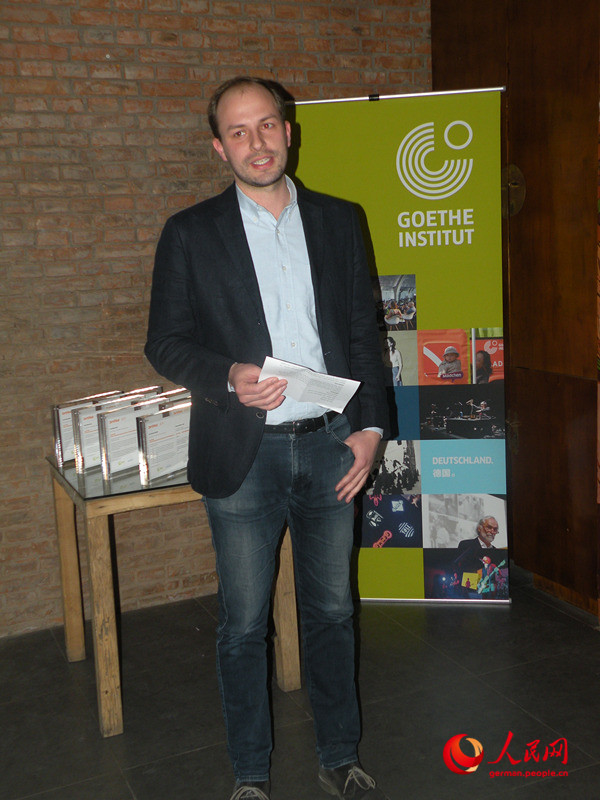 Herr Caspar Welbergen von der Stiftung Mercator drückt bei der Zeremonie seine Gratulation zur erfolgreichen Veranstaltung des Programms sowie seine Hoffnung auf die zukünftigen bilateralen Projektkooperationen aus. |