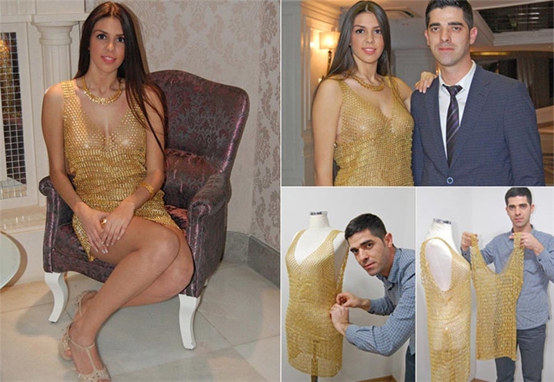 Der türkische Juwelier Ahmet Atakan hat eine vergoldetes Kleid geschaffen. Der Rock besteht aus 78,000 Stücken Gold mit einem Preis von rund 108,000 Euro. Trotz des hohen Preises sind schon 8 Stücke verkauft worden. |