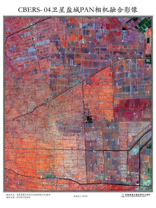 Eine Fernerkundungsbildfusion von Yancheng, aufgenommen mit der PAN-Kamera. |
