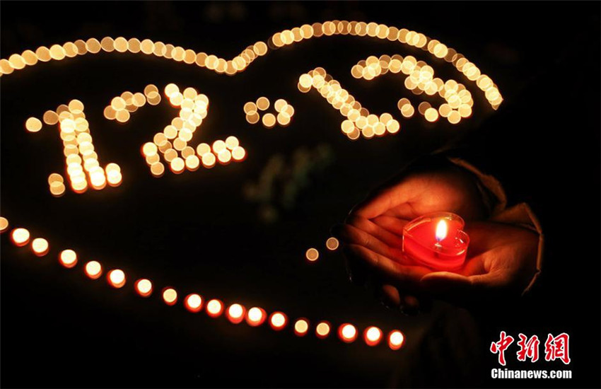 Studenten in Nanjing gedenken mit Kerzen den Opfern des Nanjing-Massakers. |