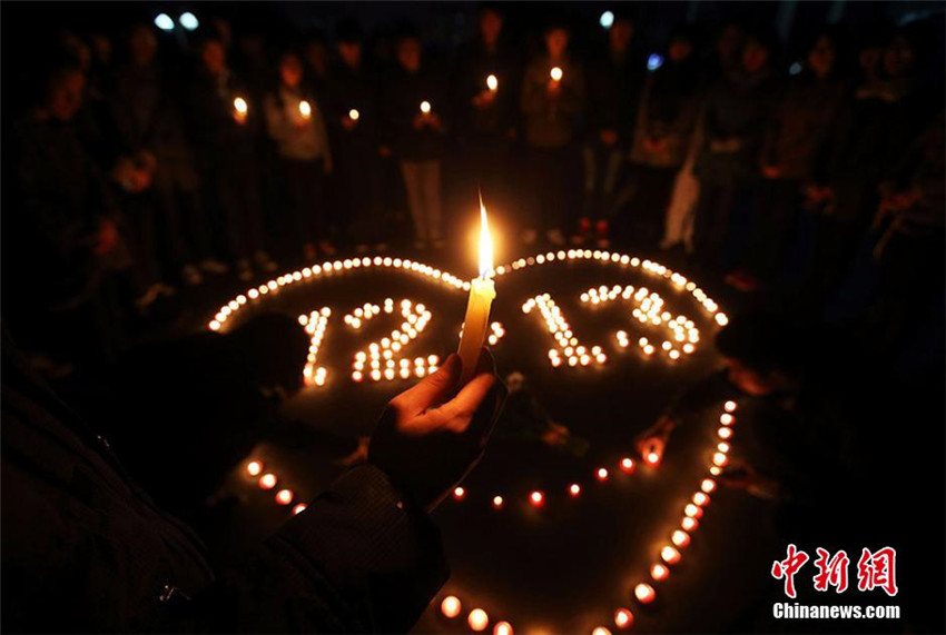 Studenten in Nanjing gedenken mit Kerzen den Opfern des Nanjing-Massakers. |