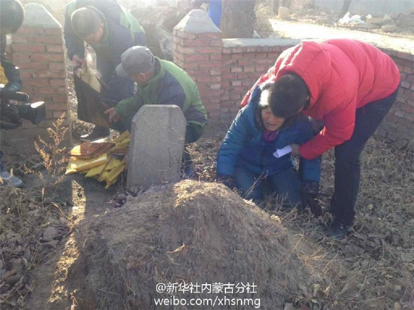 Nach dem Erhalt des Wiederaufnahme-Urteils trauert Hugjiltus Mutter vor dem Friedhof um ihren Sohn. (Foto: Microblogging Sina der Nachrichtenagentur Xinhua, Büro der Inneren Mongolei) |