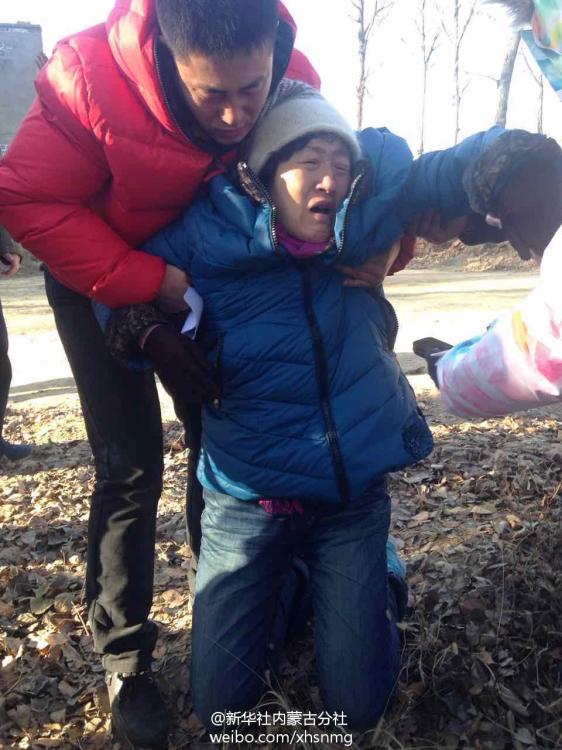 Nach dem Erhalt des Wiederaufnahme-Urteils trauert Hugjiltus Mutter vor dem Friedhof um ihren Sohn. (Foto: Microblogging Sina der Nachrichtenagentur Xinhua, Büro der Inneren Mongolei) |