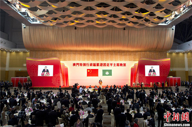 Staatspr?sident Xi trifft bei dem Begrü?ungsbankett Vertreter aus verschiedenen Kreisen in Macao und dabei h?lt er eine wichtige Rede. |