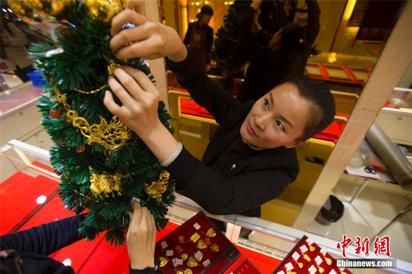 Goldener Weihnachtsbaum in Taiyuan (3)