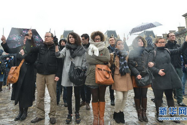 An der landesweiten Trauer in Frankreich um die 12 Opfer der t?dlichen Schüsse auf das Satiremagazin ?Charlie Hebdo" nahmen in Paris Pr?sident Francois Hollande, Innenminister Bernard Cazeneuve und die Pariser Bürgermeisterin Anne Hidalgo sowie mehrere hundert Polizisten teil. Im Anschluss sagte Francois Hollande in einer Rede: