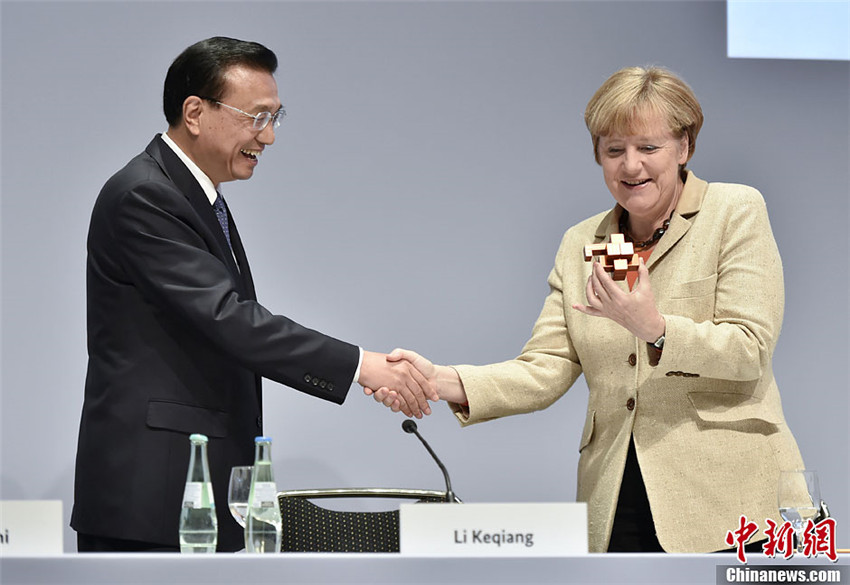 Auf dem deutsch-chinesischen Wirtschaftsforum am 10. Oktober schenkt Li Bundeskanzlerin Angela Merkel einen Luban-Knoten. Der Knoten wurde von Studenten des Tianjin Sino-German Vocational Technical College hergestellt. Laut Li symbolisiert der Knoten die vertiefte Zusammenarbeit zwischen China und Deutschland. |