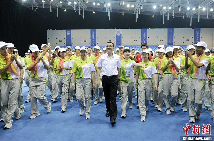 Am 28. August besucht Li die Freiwilligen der Olympischen Jugendspiele in Nanjing. |