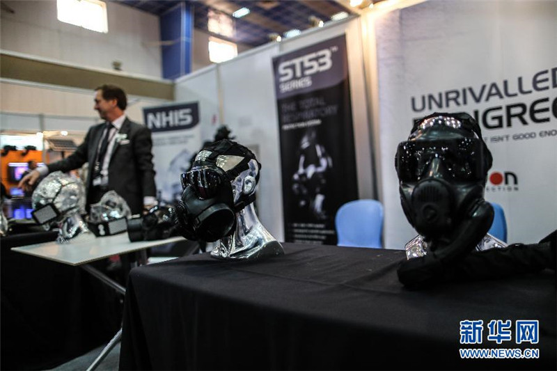 Eine neue Art von Gasmasken wird ausgestellt. |