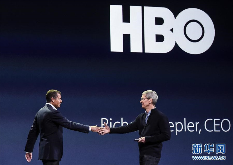 Tim Cook und HBO-CEO Richard Plepler beglückwünschen sich gegenseitig. |