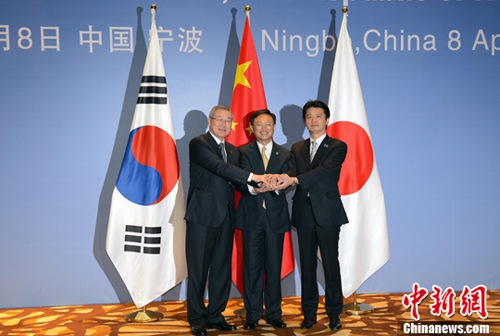 Die Au?enminister von Südkorea, China und Japan trafen sich am 8. April 2012 in Ningbo. (Archivfoto)