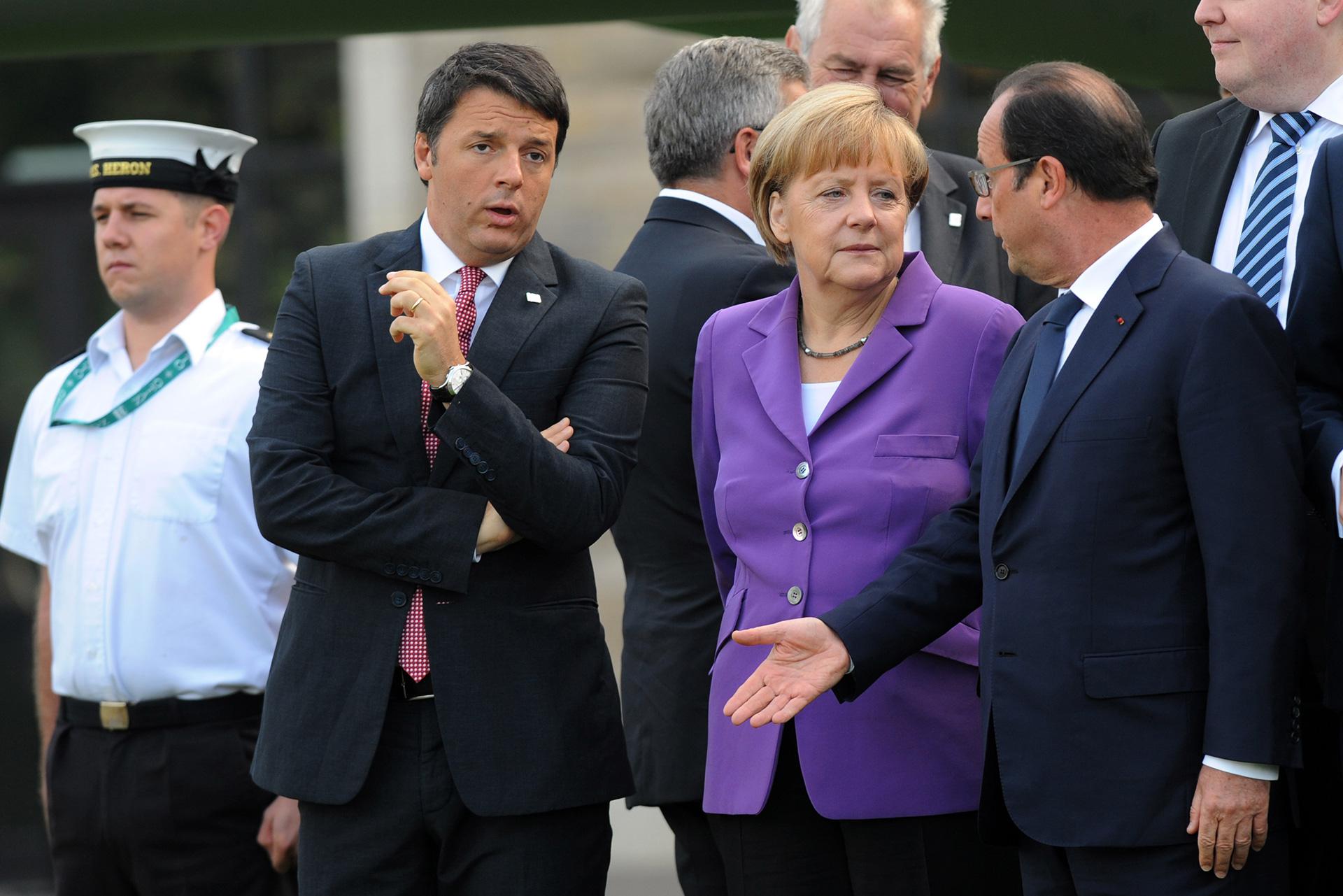 ?Cameron will sich der AIIB anschlie?en. Was sollen wir nur tun?“, fragen sich der italienische Ministerpr?sident Matteo Renzi, die deutsche Bundeskanzlerin Angela Merkel und der franz?sische Pr?sident Fran?ois Hollande.