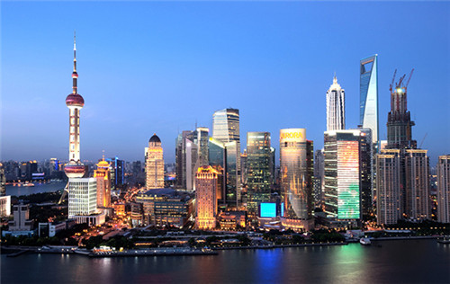 Der Finanzdistrikt Lujiazui mit dem Oriental Pearl TV Tower, dem Jinmao Tower und dem Shanghai World Financial Center in Shanghai. Shanghai wurde von den ausl?ndischen Facharbeitern im letzten Jahr zur attraktivsten Stadt gew?hlt.