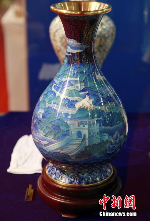 Diese Cloisonné-Vase wurde von acht chinesischen Künstlern gemeinsam geschaffen. |