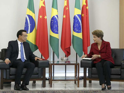 Am Dienstag hat der chinesische Ministerpr?sident Li Keqiang sich mit der brasilianischen Pr?sidentin Dilma Rousseff zu Gespr?chen getroffen. Dabei haben beide Seiten eine Einigung über die F?rderung der bilateralen Produktionskooperation erzielt und vereinbart die Durchführbarkeit einer ?Atlantik-Pazifik-Eisenbahn" wissenschaftlich zu untersuchen. Zudem sind zwischen beiden Staaten 35 Kooperationsvereinbarungen mit einem Gesamtvolumen von 27 Milliarden US-Dollar unterzeichnet worden.