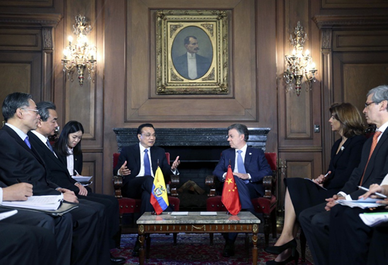 Der chinesische Premierminister Li Keqiang ist am Donnerstagnachmittag mit dem kolumbianischen Pr?sidenten Juan Manuel Santos zu einem Gespr?ch zusammengetroffen.