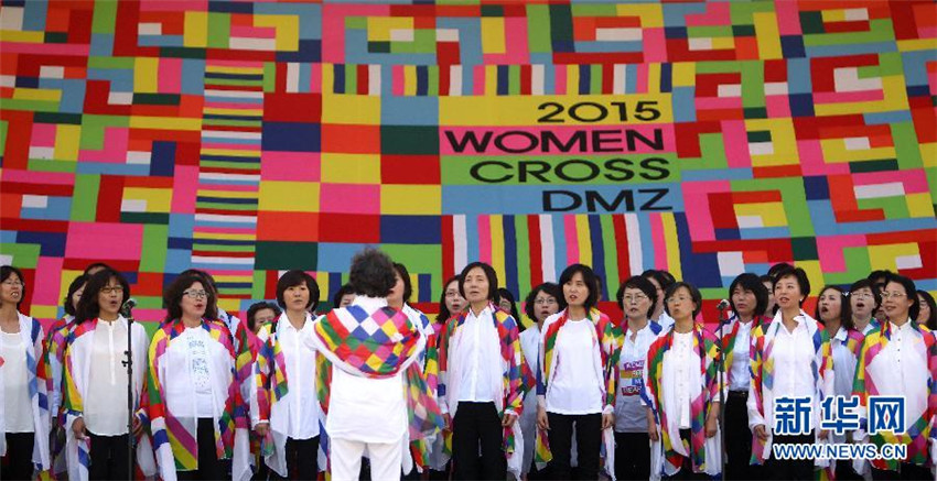 Südkoreanische Frauen singen in Paju Lieder zur Begrü?ung der internationalen Aktivistinnen. |