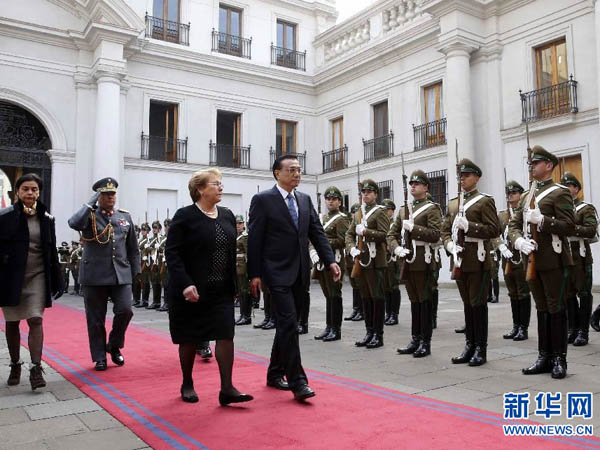 Der chinesische Ministerpr?sident Li Keqiang ist in Santiago de Chile mit der chilenischen Pr?sidentin Michelle Bachelet zu Gespr?chen zusammengetroffen.