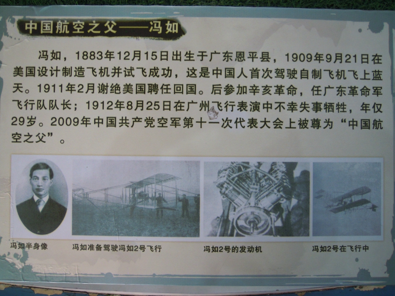 Leider sind viele Infotafeln wie jene über Feng Ru (1883-1912), den Vater von Chinas Luftfahrt, nur auf Chinesisch verfasst. |