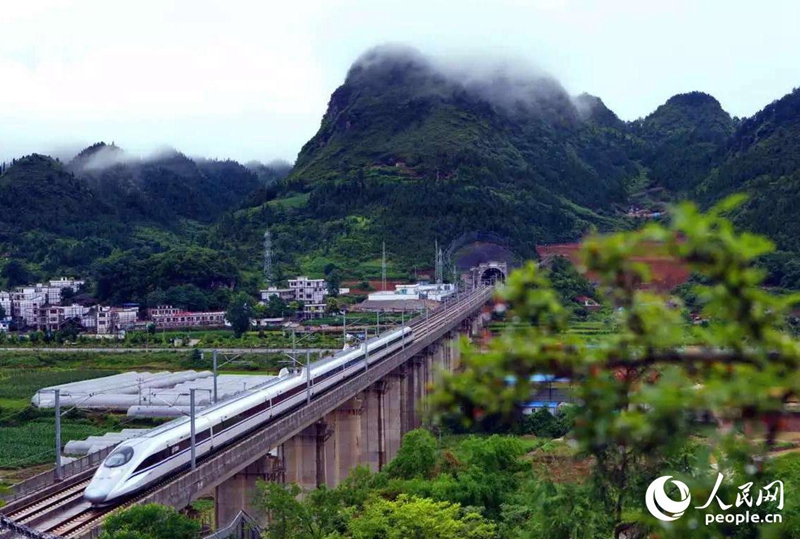 Die neue Strecke der Shanghai-Kunming-Hochgeschwindigkeitsbahn in Ost-Guizhou wurde heute Donnerstag in Betrieb genommen. |