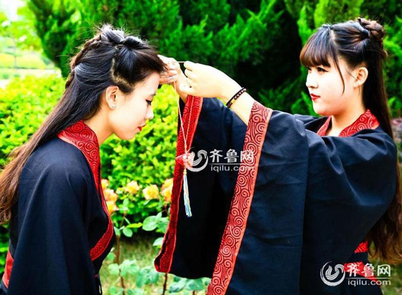 Studenten tragen klassische Kleidung für das Drachenbootfest (2)