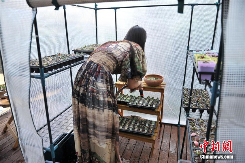 Die 29-j?hrige Gu Chunyu ist Hausfrau und Mutter eines dreij?hrigen Kindes. Ihr Garten ist fast vollst?ndig von vielen verschiedenen Sukkulenten besetzt, die sie dort züchtet. Sie fotografiert ihre Pflanzen und verkauft sie dann an Sukkulenten-Fans. Das Sukkulenten-Gesch?ft ist zu einem wichtigen Teil ihres Lebens geworden. |