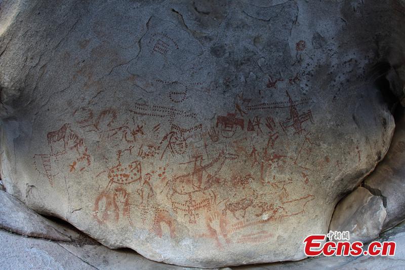 Das Foto zeigt Felseinmei?elungen, die in der H?hle Duogate im Kreis Habahe im nordwestchinesischen Autonomen Gebiet Xinjiang der Uiguren entdeckt wurden. Arch?ologen entdeckten 893 Felseinmei?elungen an rund zwanzig Ausgrabungsorten in dem Kreis, wobei die ?ltesten auf bis zu 10.000 Jahre zurückdatiert werden. |
