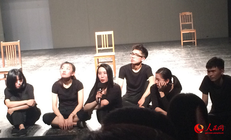 Nach der Aufführung sprechen die Studierenden auf der Bühne über die Gründe für ihre Teilnahme an dem Theaterprojekt sowie ihre pers?nlichen Gefühle. |