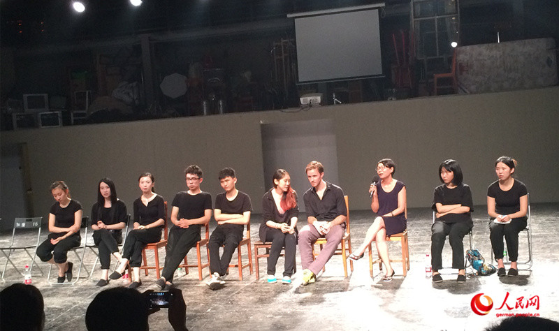 Das Theaterteam um Matthias Jochmann (Vierter von rechts) und Li Yinan (Dritte von rechts) beantworten nach der Vorstellung gemeinsam die Fragen des Publikums. |
