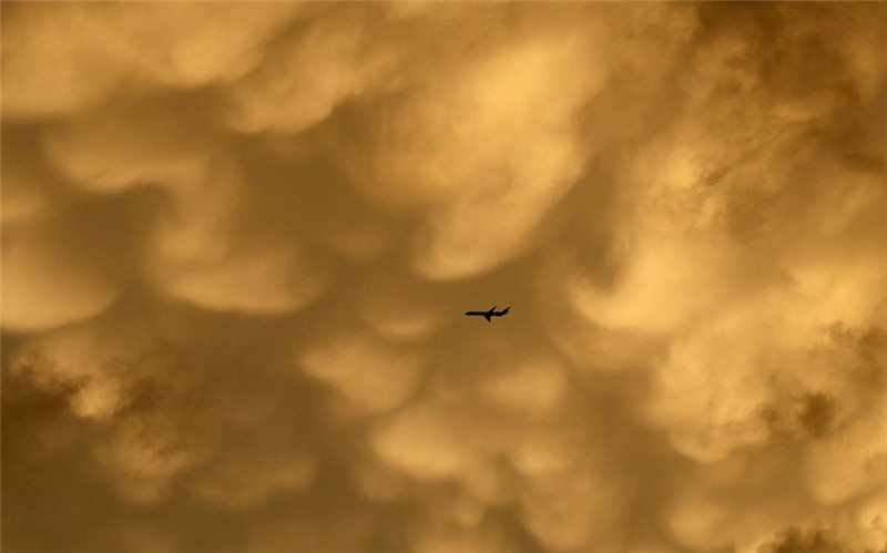 Der Himmel über dem Baseball-Stadion Wrigley Field in Chicago. |