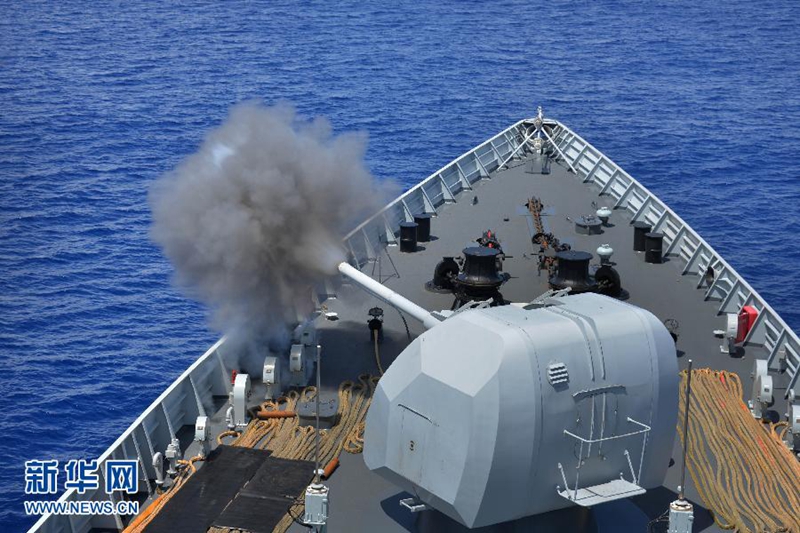 Die Kanone der ?Changchun“ er?ffnet das Feuer. |