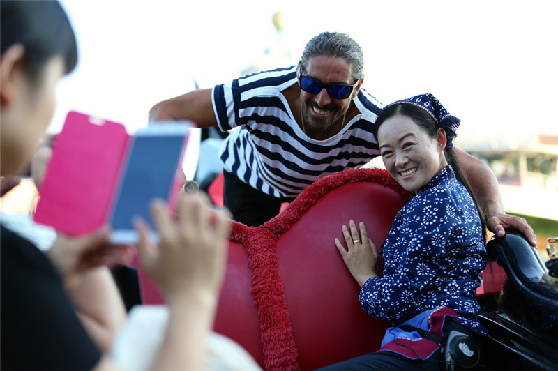 F?hrfrau aus China steuert Gondel in Venedig (5)