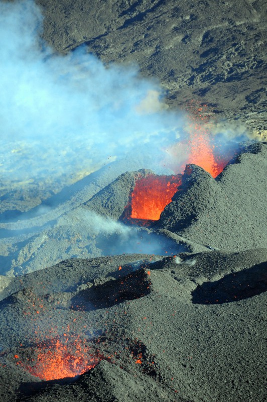Die Eruption des Piton de la Fournaise aus der Vogelperspektive. |