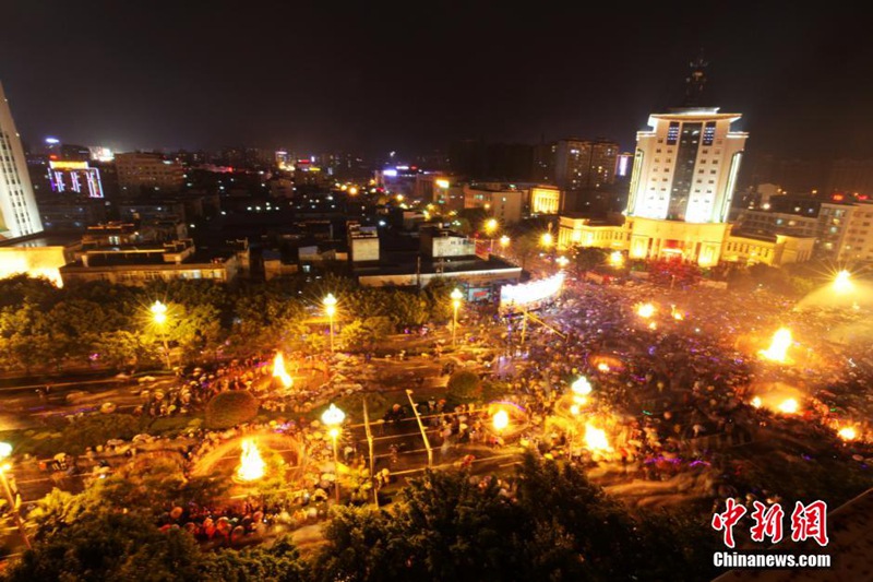 Das Fackelfest der Yi aus der Vogelperspektive |