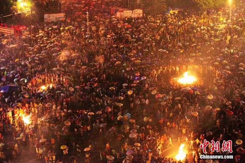 Das Fackelfest der Yi aus der Vogelperspektive |